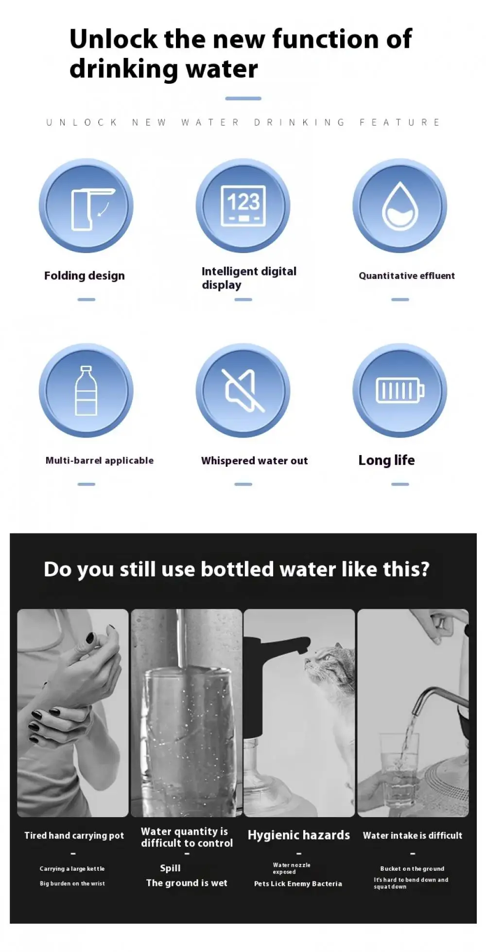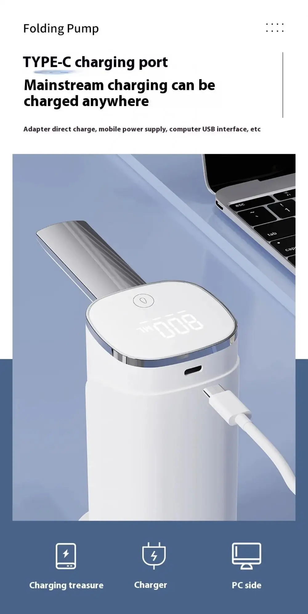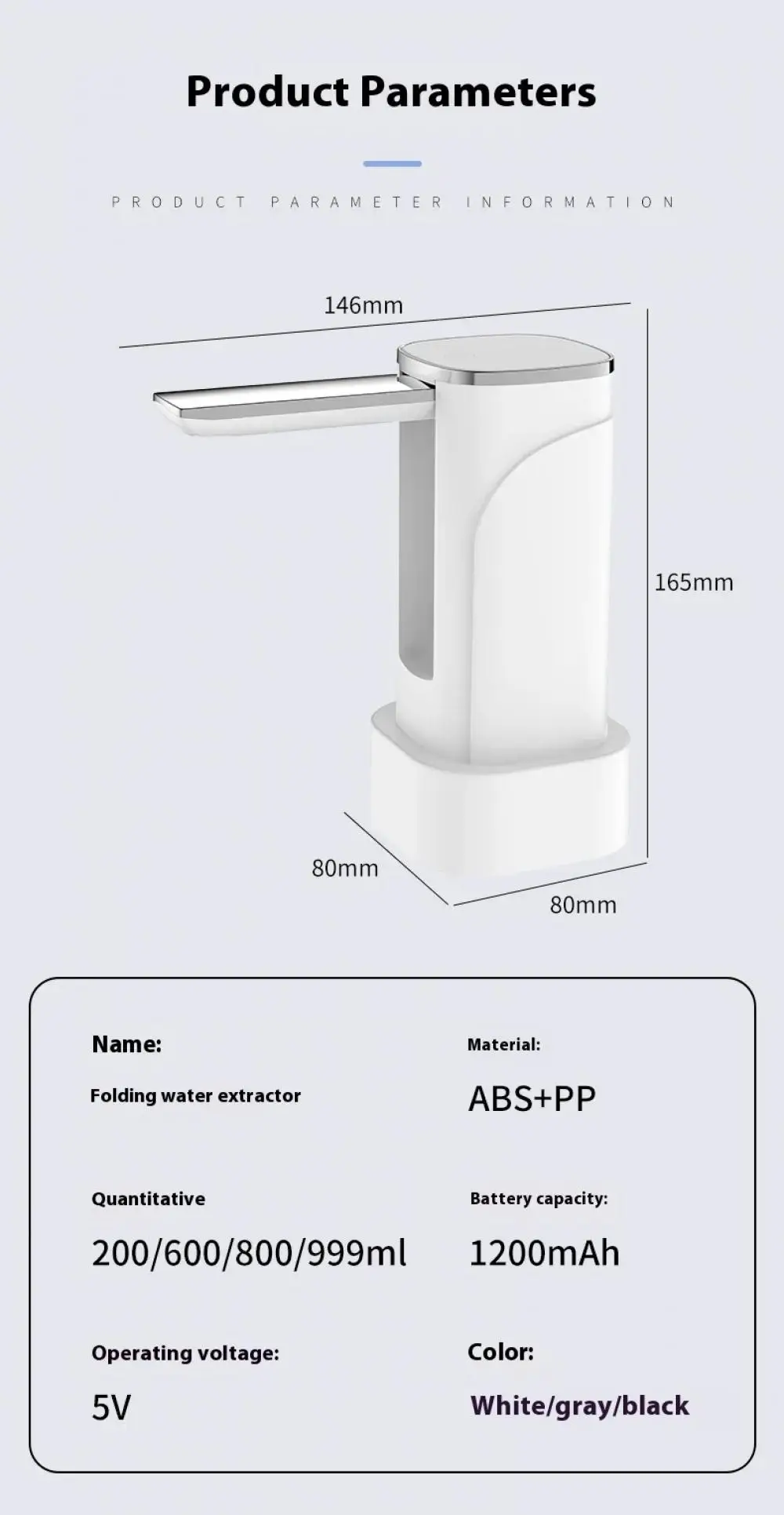 Foldable Water Pump Bottled Water Automatic Rechargeable Water Dispenser Portable Water Pump Folding Intelligent Dosing Pump